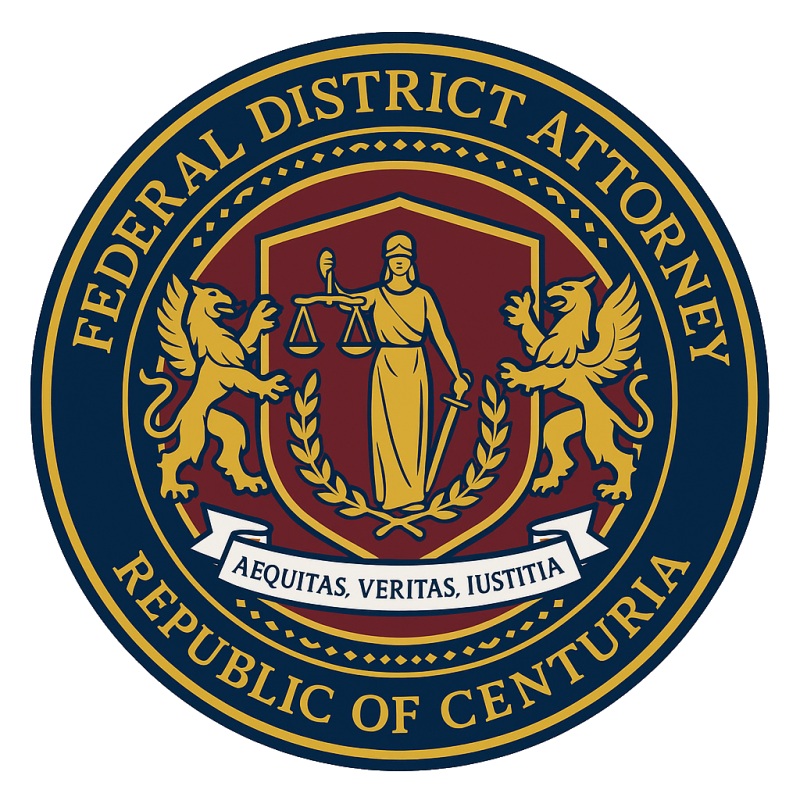 Behandelt alle federale strafzaken namens de staat Centuria.