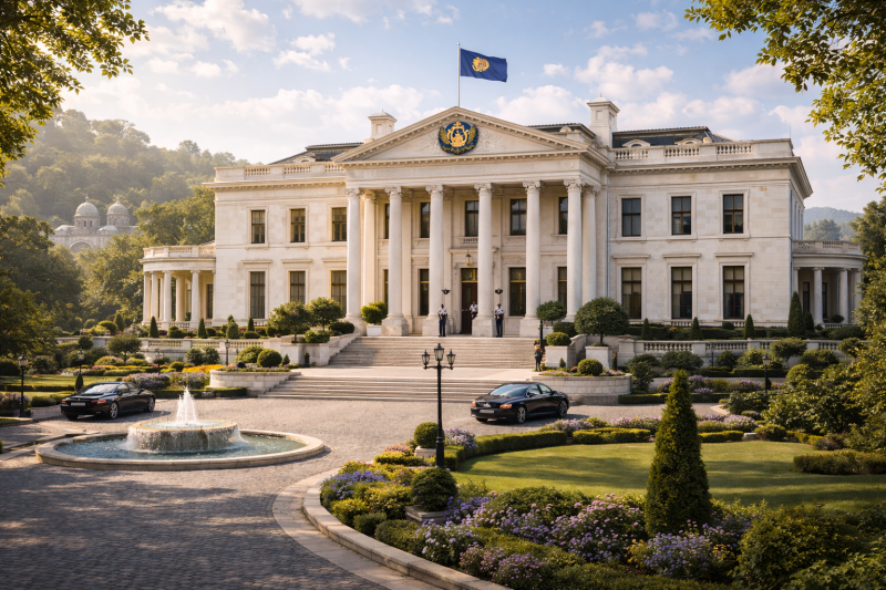 Architectonisch combineert de residentie klassieke Centuriaanse stijl met republikeinse soberheid. De naam Aurelia verwijst naar staatscontinuïteit en de historische overgang van keizerrijk naar republiek, zonder monarchale symboliek.
